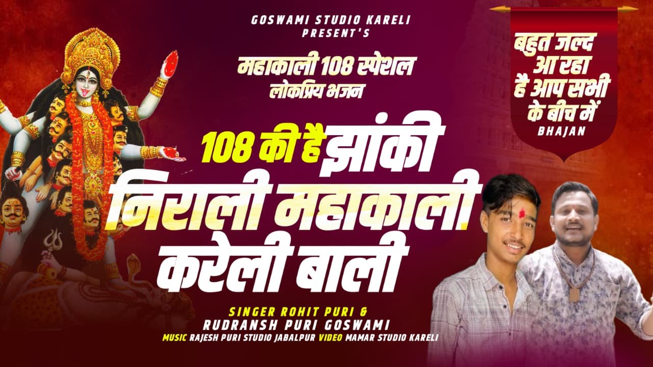 आगामी नवरात्रि मे महाकौशल के करेली नगर के शिवशक्ति चौक में माता महाकाली का 108 रूपों में दरबार सजाया जा रहा है जिसकी तैयारियां जोरो से चल रही हैं। इन्हीं 108 माता महाकाली के न्यू देवगीत भजन जल्द ही लांच हो रहे हे जो कि करेली के नन्हे कलाकार रुद्रांश गोस्वामी द्वारा गाए गए हे संगीत जबलपुर के जाने माने स्टूडियो राजेश पुरी,रोहित पुरी कलाकारों द्वारा सजाया गया हे यह सभी देवगीत जल्द ही गोस्वामी स्टूडियो करेली आप सभी के समक्ष प्रस्तुत कर रहा है जिसमें देवगीत भजन के साथ मातारानी के 108 रूपों में दर्शन कर सकेंगे।।आप सभी इस नन्हे कलाकार माता के भक्त को अपना आशीर्वाद प्रदान करें 🙏🙏
